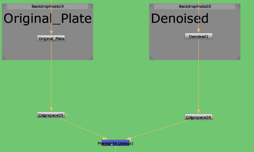 For clean up, we need to denoise the plate because the cleanup will stand out on the plate with grain. Normal workflow would be to denoise the plate first, do the clean up then re-introduce the grain.